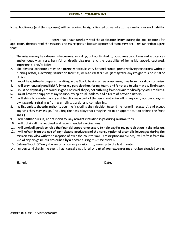 There are other requirements such as: a valid passport, missions application, live scan fingerprinting, required documents and trip payment.